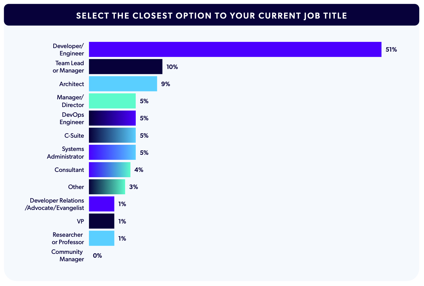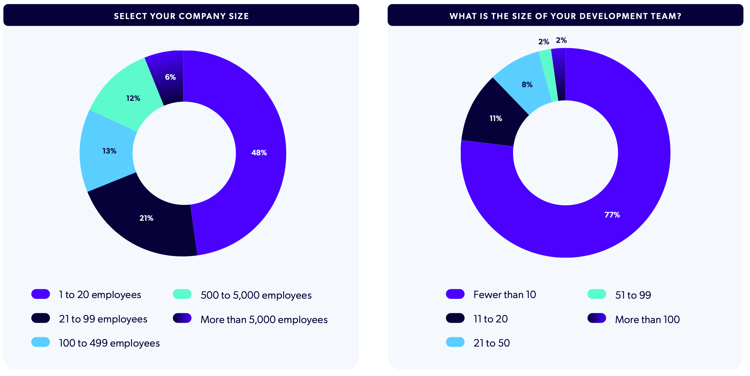 First, we asked respondents to share their job titles. As we’ve seen in previous iterations of the report, the majority of participants were in Developer or Engineer roles. Other titles saw a more even spread of representation.